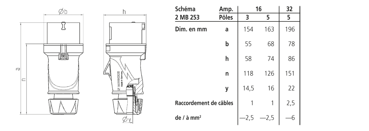 Fiche PTX 32A 4P 6h IP54