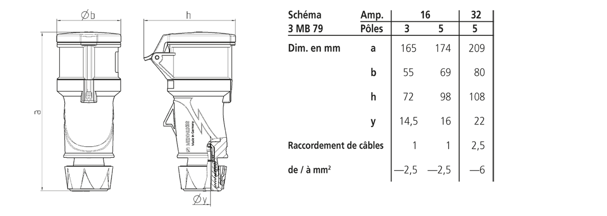 Prolongateur CEE PowerTOP Xtra 16A 4p 6h 400V IP54