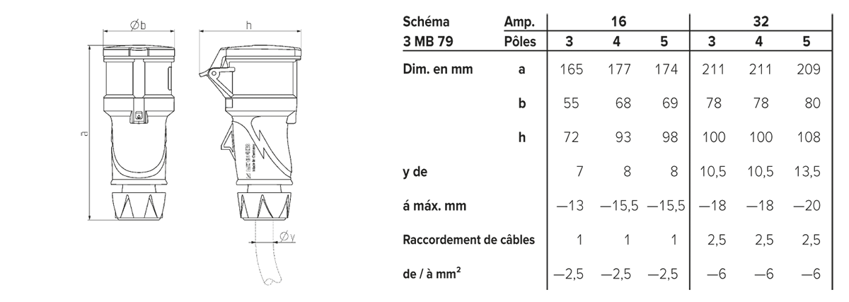 Prolongateur CEE PowerTOP Xtra 16A 5p 6h 400V IP54
