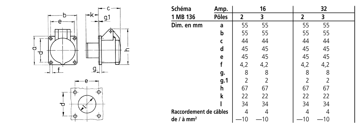 Prise a encastrer 16A 2p h 24V IP44