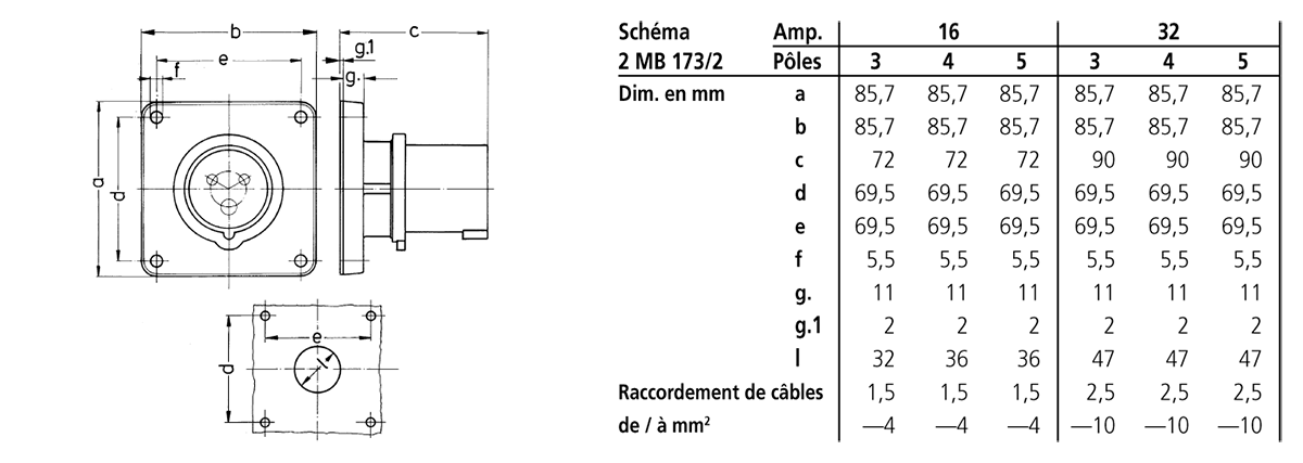 Socle connecteur 16A 3p 6h 230V IP44