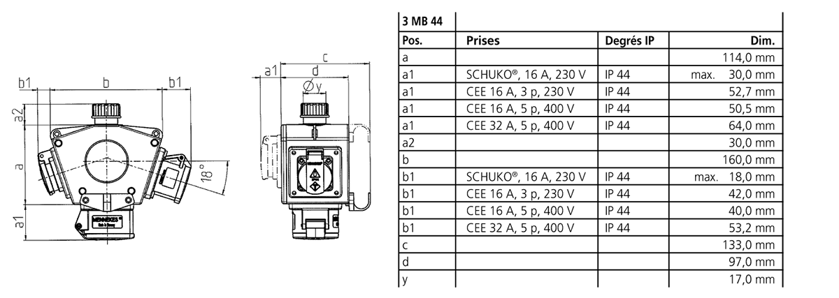Combi de prise DELTA-BOX 16A p 6h V IP44
