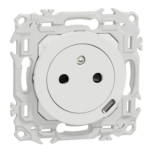 Prise Schneider Odace blanc craie affleurante avec chargeur téléphone USB C intégré d'une puissance de 18W.